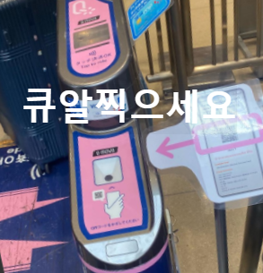 일반 개찰구로 들어가시지 마시고 꼭 이렇게 큐알코드 찍는곳에서 찍으시면 됩니다.