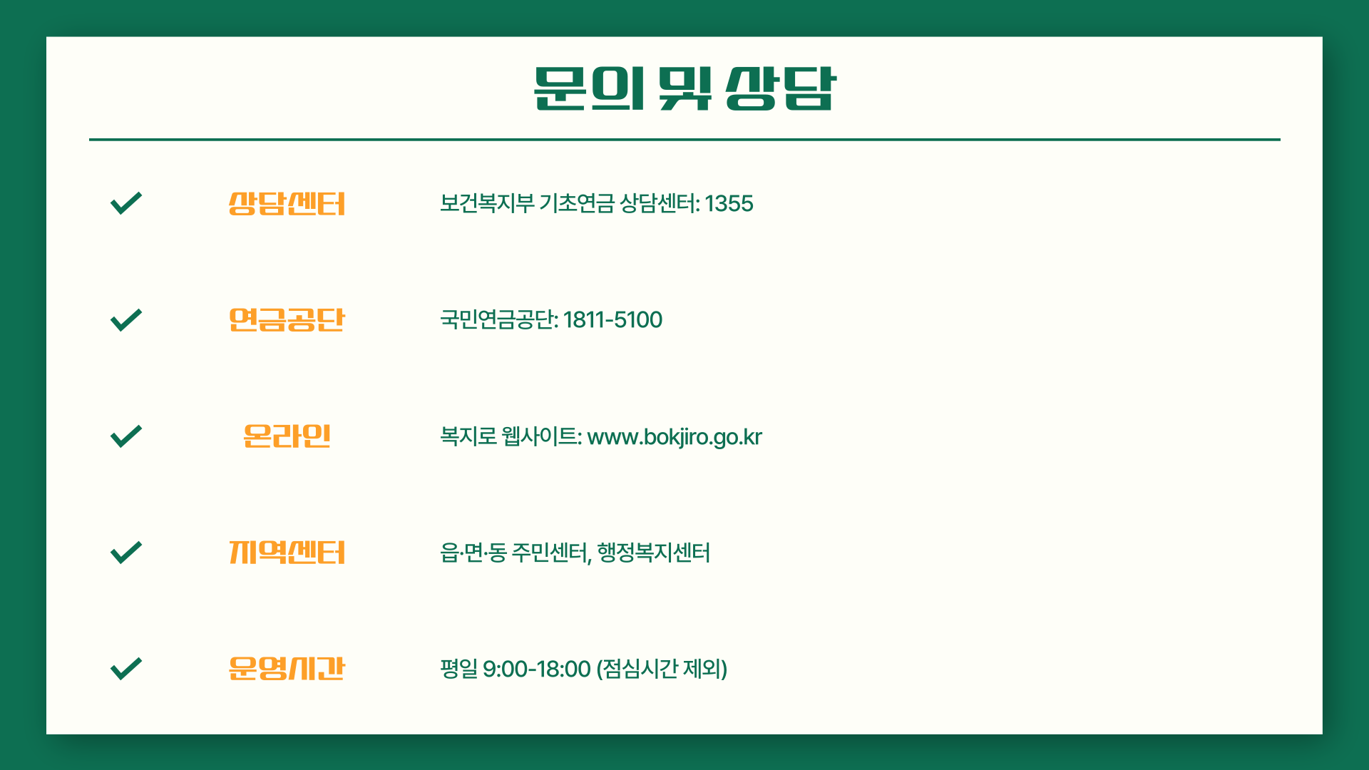 궁금한 점이 있다면 언제든지 국민연금공단에 문의하세요.