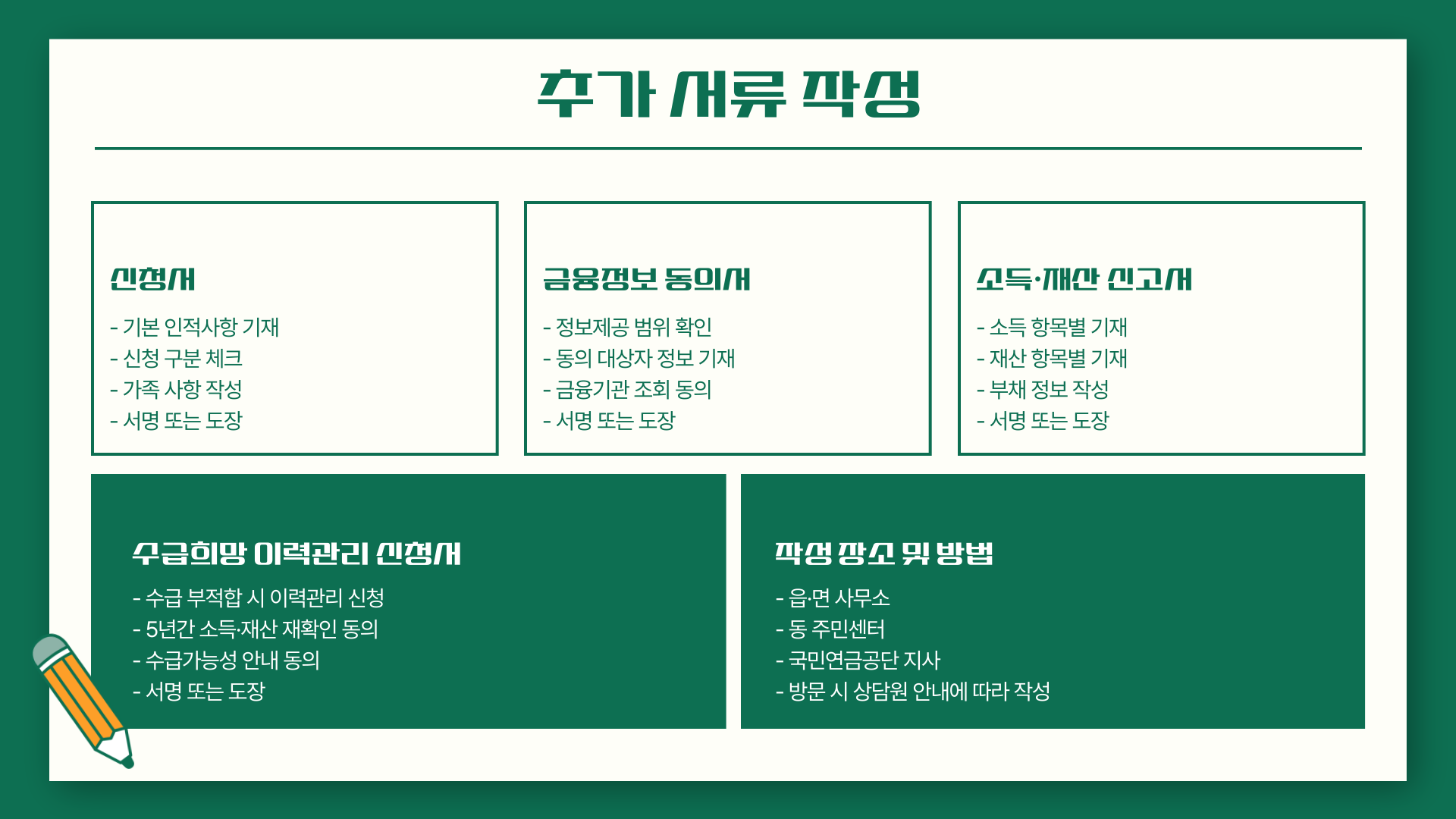 추가 서류 (읍·면 사무소, 동 주민센터, 국민연금공단 지사 방문 시 작성 가능) 신청서
