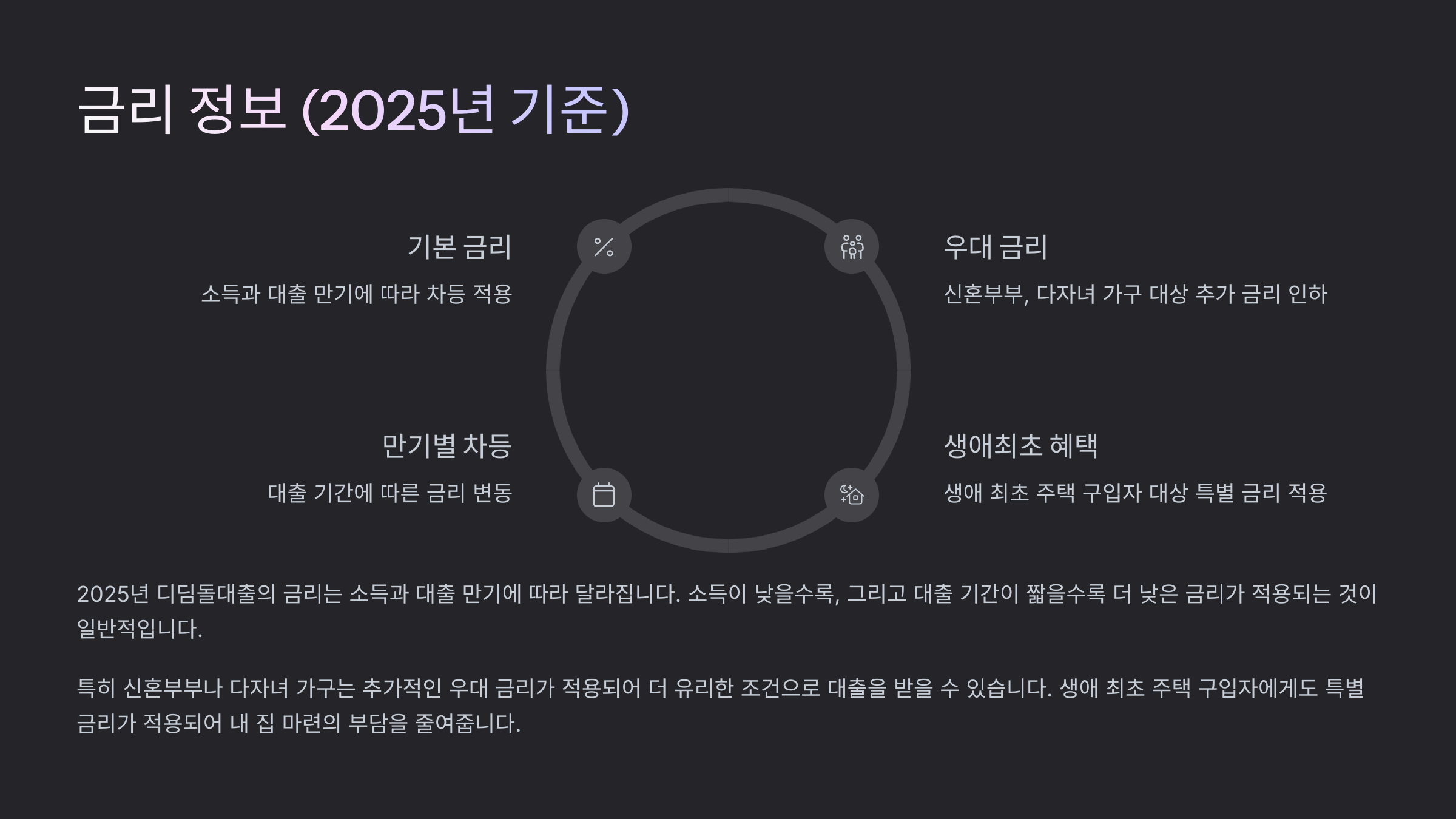 금리는 소득과 대출 만기에 따라 달라지며, 신혼부부나 다자녀 가구는 우대 금리가 적용됩니다.