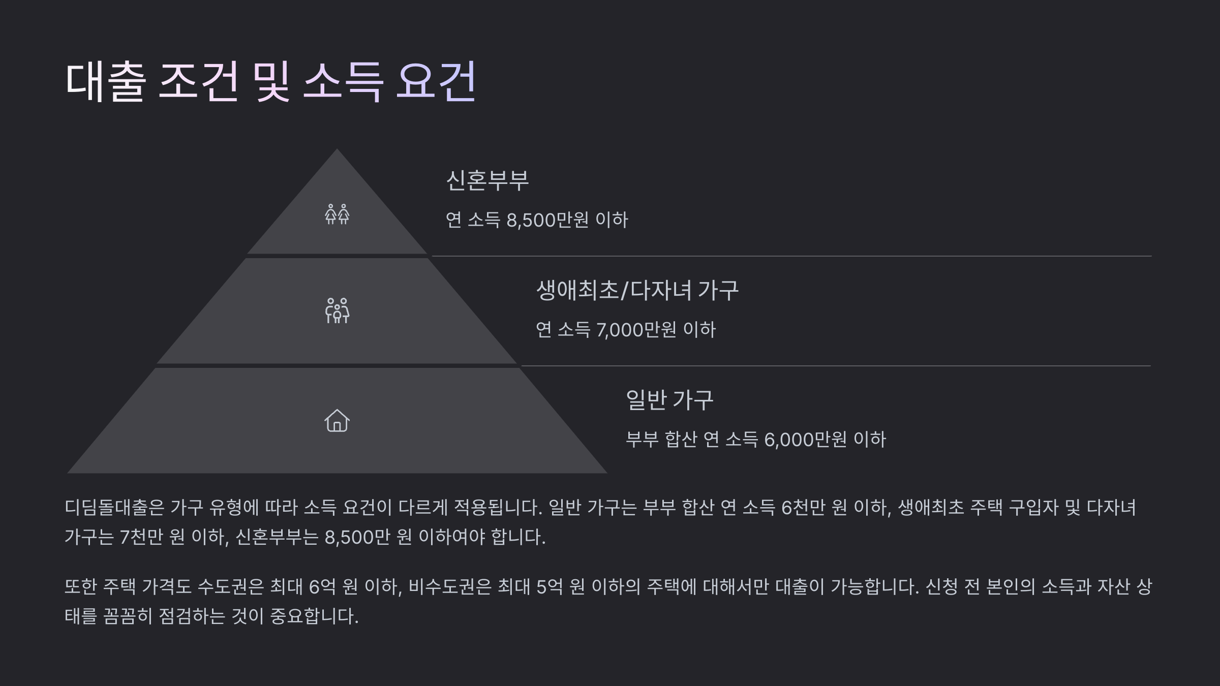 - 신혼부부: 8,500만 원 이하