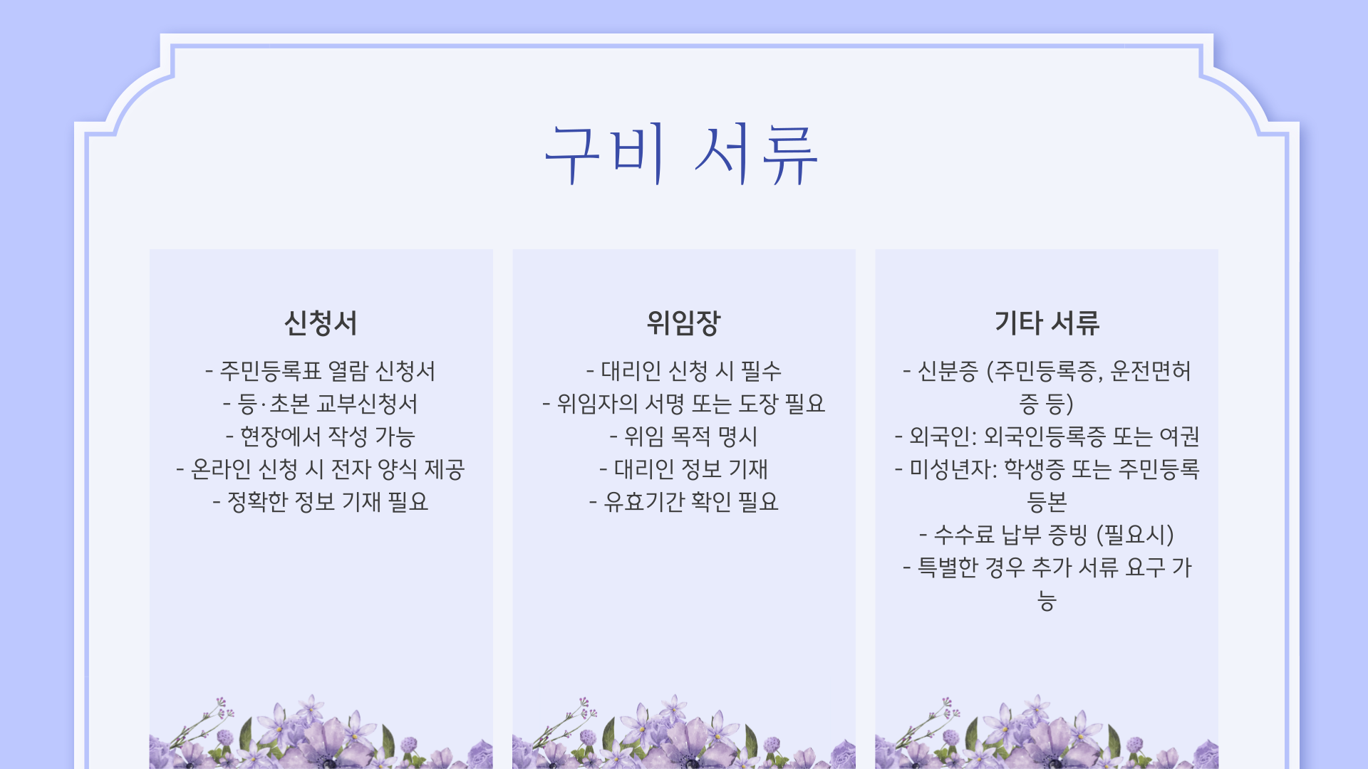 1. 신청자의 주민등록표 등본 또는 주민등록표 초본