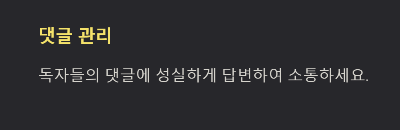 독자들의 댓글에 성실하게 답변하여 소통하세요.