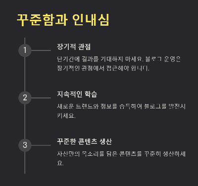 블로그 운영은 장기적인 관점에서 접근해야 합니다.