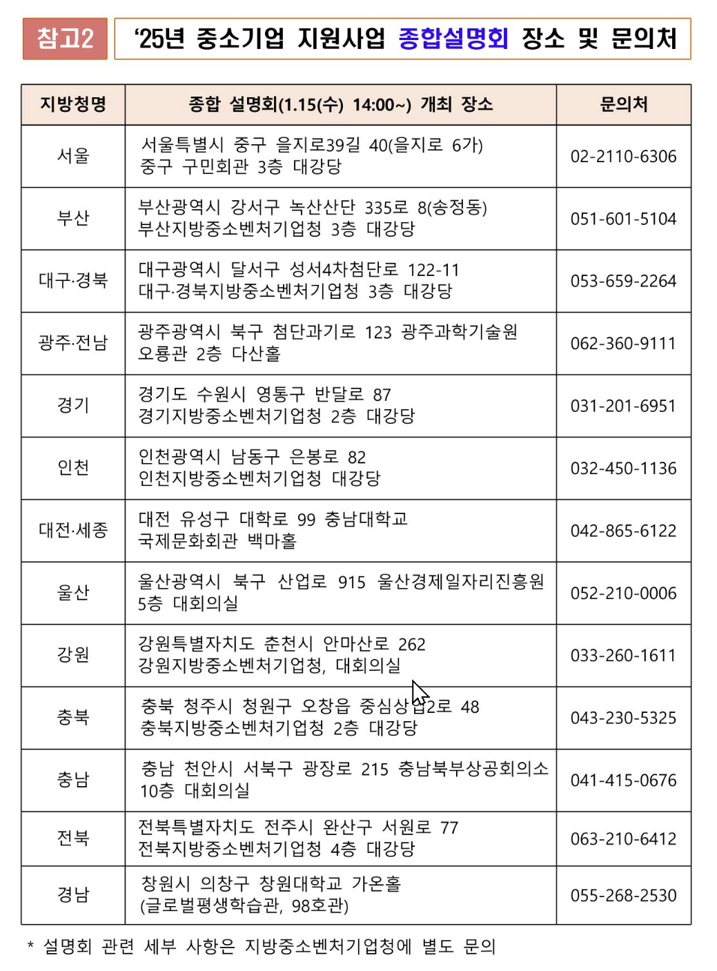 중소벤처기업부 또는 각 지방중소벤처기업청 추가 정보