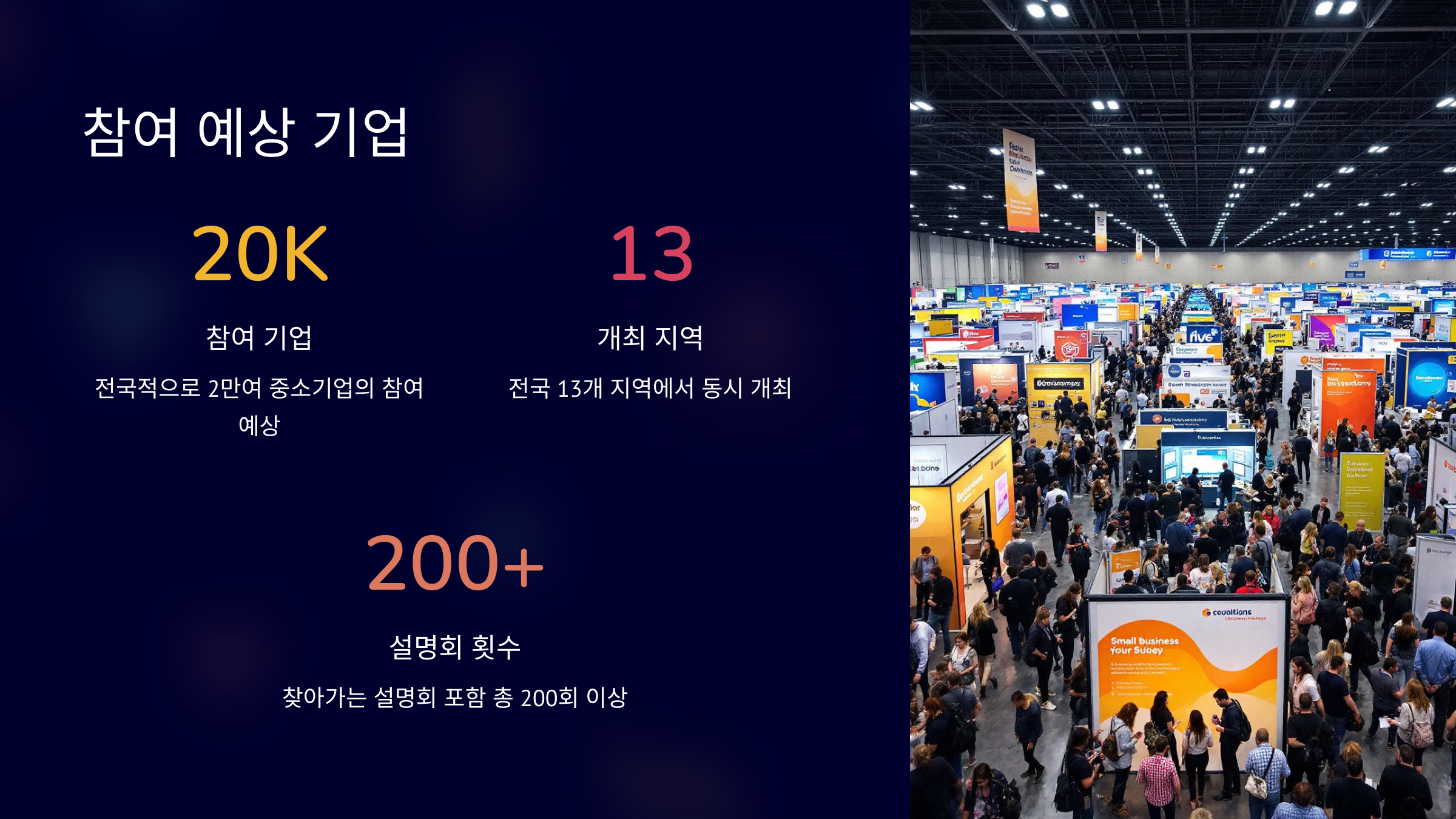 2025년 1월 ~ 2월 중 200회 이상 개최 (전년 170회) 참여 예상 기업: 2만여 중소기업